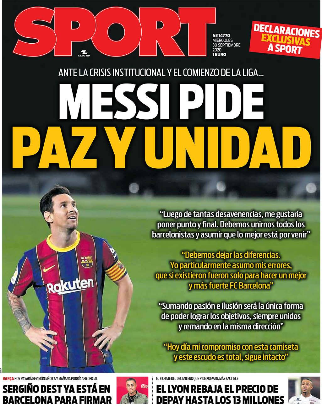 Barcatimes On Twitter Sport In The Face Of An Institutional Crisis And The Start Of La Liga Messi Has Asked For Peace And Unity