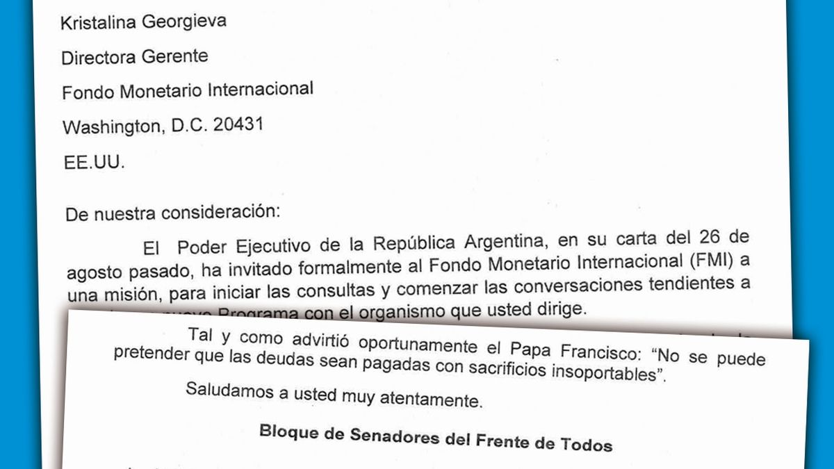 Cristina Fernández de Kirchner y 39 senadores de Frente de Todos enviaron una carta de 9 páginas y 33 puntos al Fondo Monetario Internacional. El bloque de senadores del Frente de Todos dirigió este domingo una carta al Fondo Monetario Internacional al cual llamaron a que se abstenga de condicionar la política económica del. Otra semana al servicio del FMI.